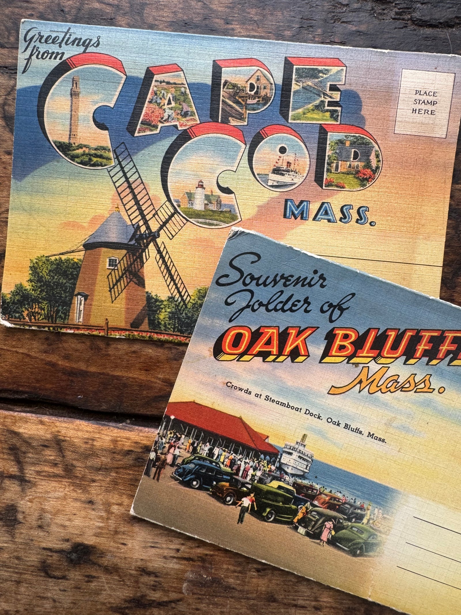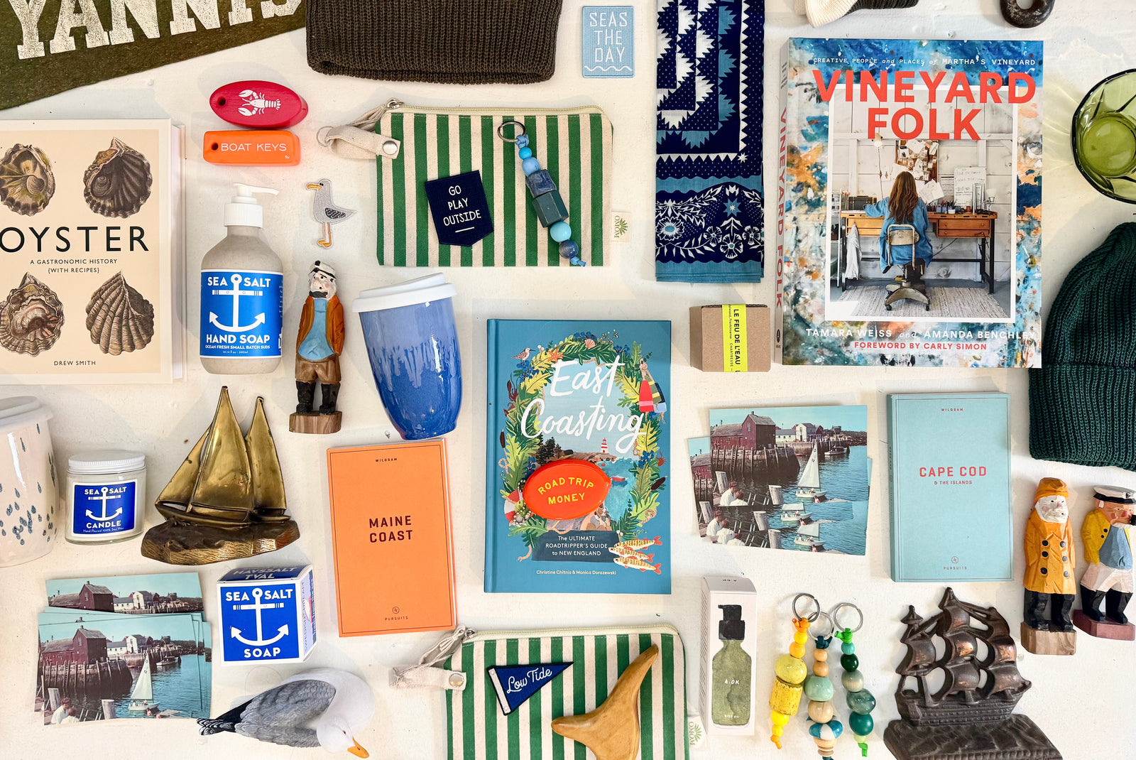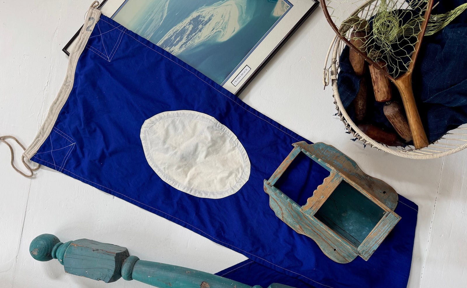 A curated collection of beautifully worn vintage and antique wood furniture, evoking the timeless charm of classic coastal New England—where weathered finishes meet seaside ease.